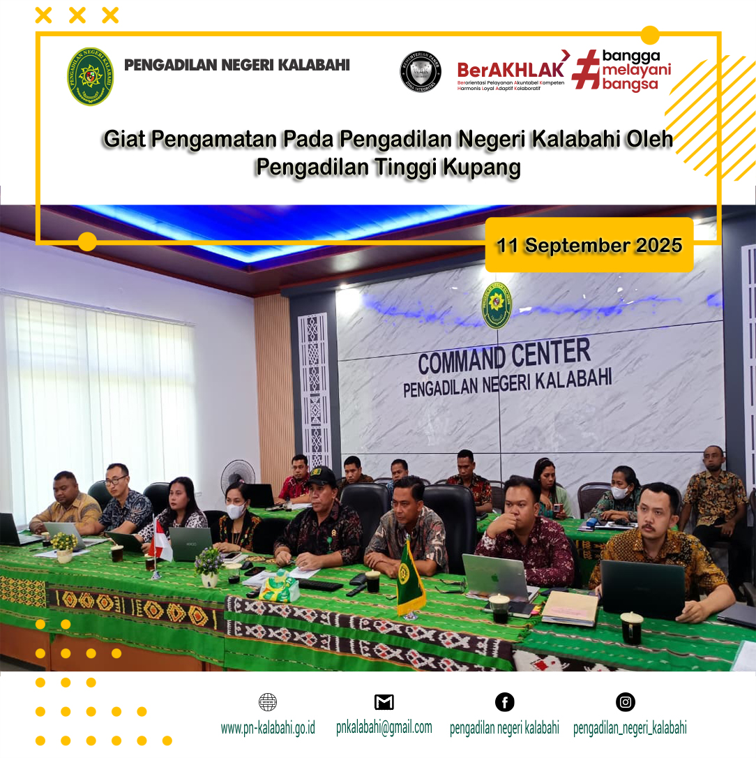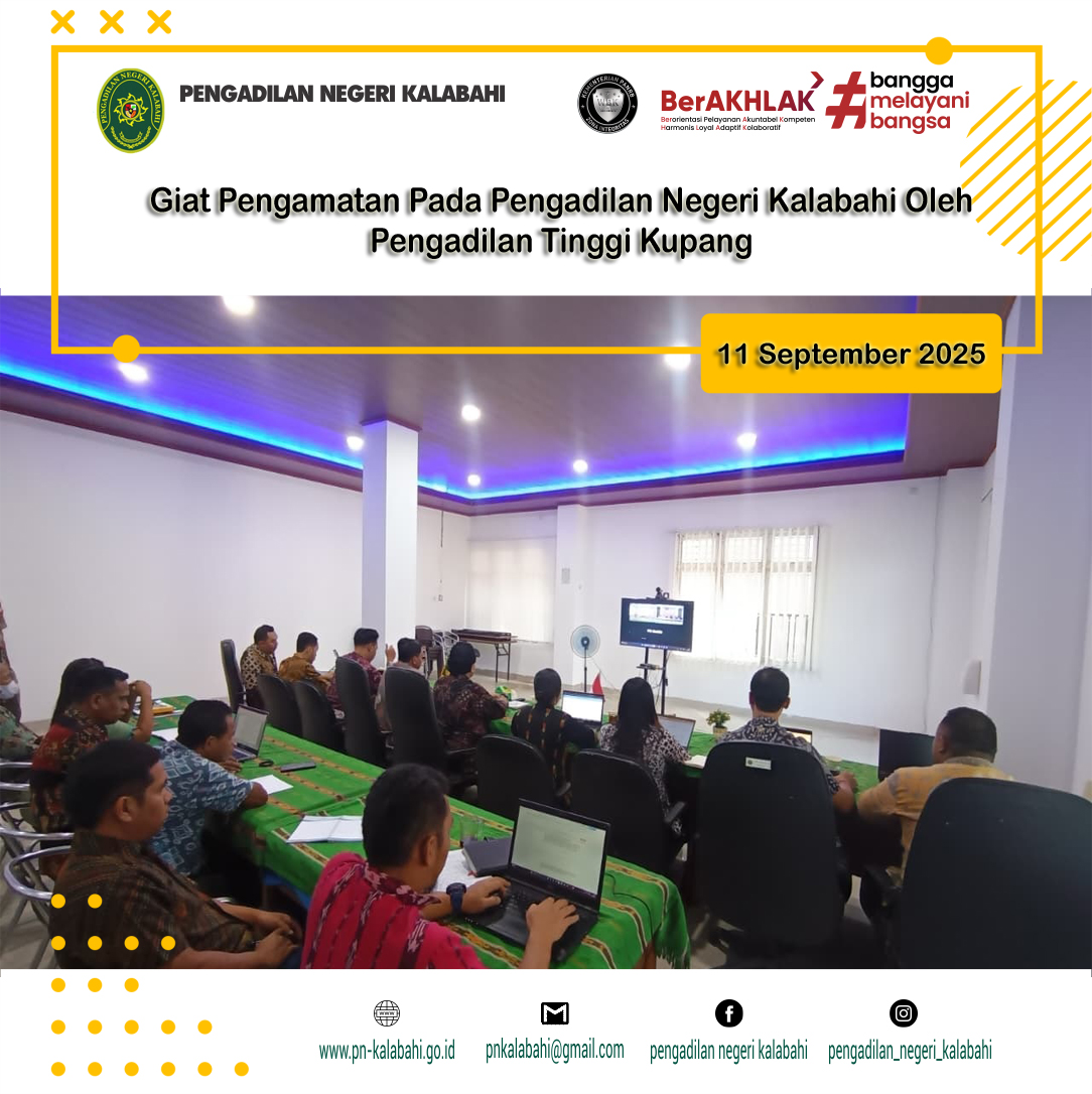 Pengadilan Negeri Kalabahi mengikuti kegiatan Pengamatan pada Pengadilan Negeri Kalabahi oleh Pengadilan Tinggi Kupang secara daring melalui Zoom Meeting bertempat di Ruang Media Center Pengadilan Negeri Kalabahi.